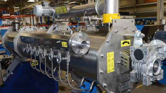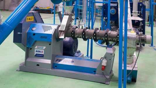 Экструзия Сухая экструзия Мокрая экструзия Сухая экструзия Технологическое оборудование для сухой экструзии, которое производит компания Farmet, базируется на богатом опыте самой фирмы в этой области, поэтому оно с успехом служит нашим заказчикам долгие годы. В основном этот вид экструзии используется при переработке материалов с содержанием масла от 16 до 22 %. Для семян с масличностью ˃ 22% рекомендуем применить перед экструзией технологию предварительного прессования. Описание технологии Принадлежности Технические параметры Фотогалерея Перерабатываемый материал непрерывно дозируется в экструдер. В экструдере материал сжимается, разминается и нагревается трением до температуры выше 100°C. Из-за высокого давления вода внутри экструдера остается в жидком состоянии даже при температуре выше 100°C. Тонкий слой материала нагревается трением очень быстро и равномерно. Следствием короткого нагревания (короткой температурной экспозиции) и воздействия высокого давления является изменение структуры белков, крахмалов и ингибирование антинутриентов.Нагретый и сжатый материал непрерывно выходит из экструдера. На выходе из сопла происходит очень интенсивная экспансия. Как только материал выйдет за пределы экструдера, он оказывается в свободной атмосфере и вода мгновенно испаряется. Происходит экспансия (расширение) материала, в т. ч. воды, содержащейся внутри клеток. В результате этого происходит интенсивное разрушение клеточных структур, превращение крахмалов и белков, что существенно повышает питательную ценность корма. Компания Farmet предлагает также дополнительные (необязательные) принадлежности, которые удовлетворят любые потребности производства. Однако мы считаем лучшим решением поставку комплектной технологической линии «под ключ», т. к. только такой вариант является технически и экономически оптимальным решением Ваших требований, в т. ч. и автоматизации всего процесса. Экструдеры предлагаются нами в диапазоне производительности от 100 кг/ч до 4000 кг/ч экструдируемого материала. Параллельное подключение машин позволяет увеличить производительность экструзионной линии. В стандартном варианте электропроводка рассчитана на подсоединение к электросети, отвечающей спецификации ЕС, но ее можно адаптировать и к требованиям локальных рынков (США, Канада…).