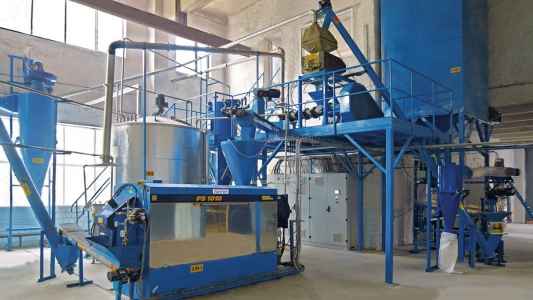 Прессовочные цеха масличных семян EP1 - Однократное прессование с экструзией EP2 - Двукратное прессование с экструзией WP1 - Однократное горячее прессование WP2 - Двукратное горячее прессование CWP - Холодно-горячее прессование CP1 - Однократное холодное прессование CP2 - Двукратное холодное прессование WPP - Горячее предварительное прессование CPP - Холодное предварительное прессование Compact - модульный прессцех Compact - EP1 Compact - EP2 Compact - CP2 Прессы малой мощности UNO, DUO Комплект прессовочного оборудования Farmer 10, Farmer 20 WP1 - Однократное горячее прессование Однократное прессование горячим способом – самая универсальная и наиболее распространенная технология переработки масличных семян. Она предназначена как для семян с низким содержанием масла (сои), так и для культур с высокой масличностью, наиболее типичные из них – рапс и подсолнечник. После предварительной подготовки семян и нагрева они пройдут вальцовку на вальцовом станке с образованием тонких хлопьев - мятки. Мятка хорошо нагревается, сушится и способна легко «отдавать» масло. Она поступает в ярусные жаровни для влаготепловой обработки. Такая подготовка материала намного упрощает отжим масла на следующем этапе - прессовании. С технологией WP1 мы, так же как и в других случаях, предоставляем услуги инжиниринга, техническую поддержку, сервис и быструю доставку запчастей. Неотъемлемой частью технологий Farmet является система интеллигентного управления и визуализации всех производственных процессов – Farmet Intelligent Control (FIC). Описание технологии Принадлежности Технические параметры Фотогалерея Исходной точкой технологии является промежуточный бункер, в котором находится запас семян на несколько часов работы прессцеха. Семена поступают во входной нагреватель или в оборудование для температурной стабилизации семян (в зависимости от производственной мощности прессцеха), затем в вальцовый станок. Этот транспортный путь мы рекомендуем доукомплектовать оборудованием для очистки семян. Также можно дополнить технологию на входе весами непрерывного взвешивания и рушально-веечным оборудованием.Семена, прошедшие предварительную обработку, поступают в жаровню, где они нагреваются и подсушиваются.Подготовленные семена постепенно сжимаются в шнековом прессе, отжатое масло вытекает через щели корзины. В масле содержатся физические примеси (фуз), поэтому оно нуждается в сепарации и фильтрации. Компания Farmet предлагает также дополнительные (необязательные) принадлежности, которые удовлетворят любые потребности производства. К технологии предлагается широкий выбор загрузочных воронок (бункеров), транспортеров, емкостей, устройств для предварительной обработки семян, а также для перекачивания, фильтрации, рафинирования и хранения масла. Однако мы считаем лучшим решением поставку комплектной технологической линии «под ключ», т. к. только такой вариант является технически и экономически оптимальным решением Ваших требований, в т. ч. и автоматизации всего процесса. Технология однократного прессования горячим способом – комплексное решение переработки масличных семян прессованием. Это технологическое оборудование предлагается в диапазоне производительности от 40 до 900 т семян в сутки. В стандартном варианте электропроводка рассчитана на подсоединение к электросети отвечающей спецификаци