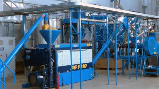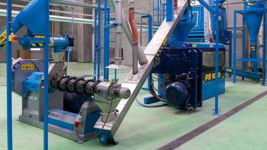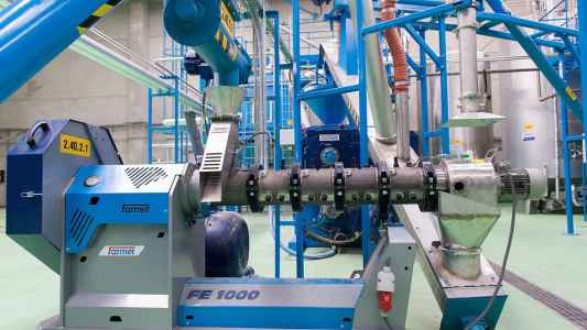 Прессовочные цеха масличных семян EP1 - Однократное прессование с экструзией EP2 - Двукратное прессование с экструзией WP1 - Однократное горячее прессование WP2 - Двукратное горячее прессование CWP - Холодно-горячее прессование CP1 - Однократное холодное прессование CP2 - Двукратное холодное прессование WPP - Горячее предварительное прессование CPP - Холодное предварительное прессование Compact - модульный прессцех Compact - EP1 Compact - EP2 Compact - CP2 Прессы малой мощности UNO, DUO Комплект прессовочного оборудования Farmer 10, Farmer 20 EP1 - Однократное прессование с экструзией Однократное прессование с экструзией – это технология, специально разработанная для переработки сои. Комбинация экструдирования и прессования позволяет получить жмых высшего качества. Отжим масла сразу после экструзии очень эффективен, поэтому в жмыхе остается действительно минимальное количество остаточного масла. С задачей редуцирования антинутриентов, содержащихся в сое, также как и повышения содержания байпас-протеинов (для максимального использования энергии корма), наши экструдеры справляются отлично. И вообще, использование экструдера в качестве оборудования для предварительной термической и механической обработки материала является весьма перспективным. Прессы без труда выжимают из подготовленного таким методом материала максимальное количество масла. С технологией EP1 мы, так же как и в других случаях, предоставляем услуги инжиниринга, техническую поддержку, сервис и быструю доставку запчастей. Неотъемлемой частью технологий Farmet является система интеллигентного управления и визуализации всех производственных процессов – Farmet Intelligent Control (FIC). Описание технологии Принадлежности Технические параметры Фотогалерея Исходной точкой технологии является промежуточный бункер, в котором находится запас семян на несколько часов работы прессцеха. Там, где есть опасность, что температура семян может упасть ниже 15 °C (в зимнее время), рекомендуем доукомплектовать технологию температурной стабилизацией семян. Семена из промежуточного бункера непрерывно поступают в экструдер. Этот транспортный путь мы рекомендуем оборудовать устройством очистки семян.Также можно дополнить технологию на входе весами непрерывного взвешивания или рушально-веечным оборудованием. Перед входом в экструдер рекомендуем семена измельчить в дробилке, такое нарушение структуры облегчит их прохождение через экструдер.Экструдированный материал доставляется транспортером в пресс. Это - открытый транспортер, чтобы был возможен отвод пара, возникающего на выходе из экструдера. Там наблюдается очень интенсивное испарение, поэтому в наше предложение включена локальная вытяжка пара на выходе экструдера, которая в основном решает эту задачу.Подготовленные семена постепенно сжимаются в шнековом прессе и отжатое масло вытекает через щели корзины. В масле содержатся физические примеси (фуз), поэтому оно нуждается в сепарации и фильтрации. Компания Farmet предлагает также дополнительные (необязательные) принадлежности, которые удовлетворят все потребности производства. К технологии предлагается широкий выбор загрузочных воронок (бункеров), транспортеров, емкостей, устройств для предварительной обработки семян, а также для перекачивания, фильтрации, рафинирования и хранения масла. Однако мы считаем л